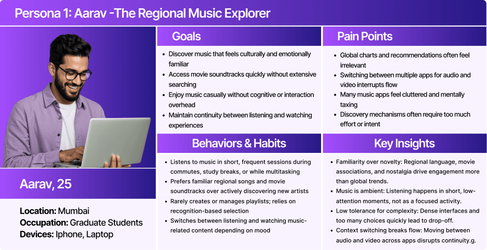 “ How might we design a native music experience within ZEE5 that enables effortless discovery, respects regional preferences, and increases daily user engagement without disrupting the core OTT experience? ”