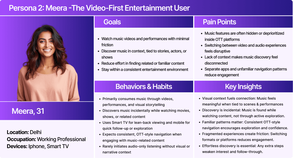 Before this launch, ZEE5 did not have a standalone or integrated music destination, despite owning a large catalog of movie soundtracks, music videos, and live performances. This represented a missed opportunity for daily engagement, content discovery, and retention.